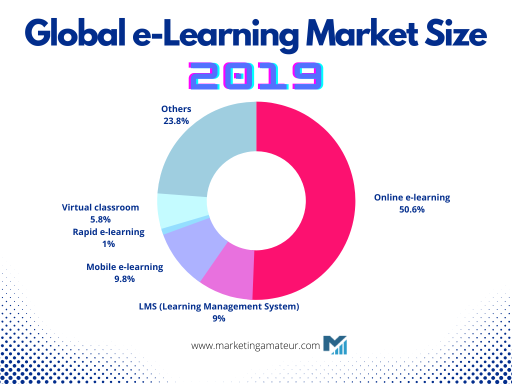 For example, online courses are hot right now. Take a look at what the global e-learning market looked like in 2019: